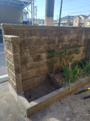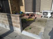 名古屋市南区にで駐車一台分のスペースしかないとのことで、横のブロック塀を部分解体してバイクの出入りを出来るようにしたいとのご依頼です。