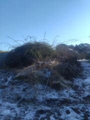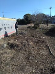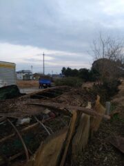 周りをカットし終わって最後はワイヤーで引っ張りました。落としたバラの塊は、ある程度の大きさにカットしてトラックに積み込みバラは完了。