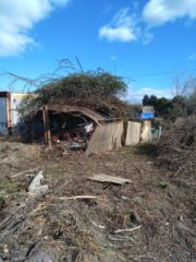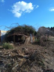 ビニールハウスの様な物を解体して中にあった農機具類、プラスチック容器、食器類、ビン類などを回収して作業終了しました。