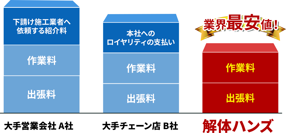 解体ハンズではご相談から作業日の決定を自社で行います。 その為作業日までの費用は発生せず、スピーディーな対応が可能です!